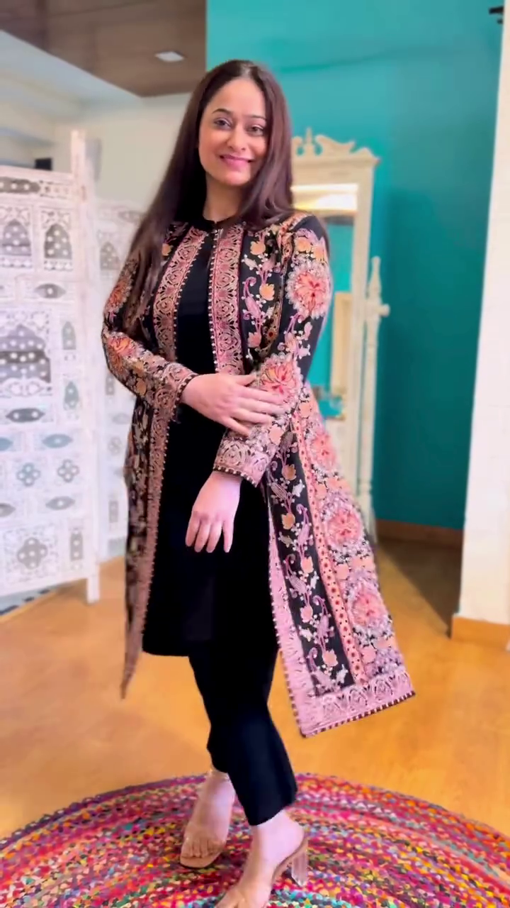 Most Trending Black Kashmiri Detachable Jacket 3-Piece Set with Inner & Pant – Elegant Fusion of Tradition & Style quantity